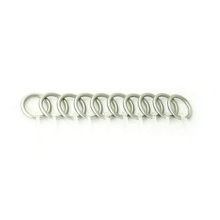 Inelele din metal cu cârlig din plastic se montează pe bară la 8-10 cm distanță una față de alta. În cârligele agățați draperiile dotate cu rejansă.