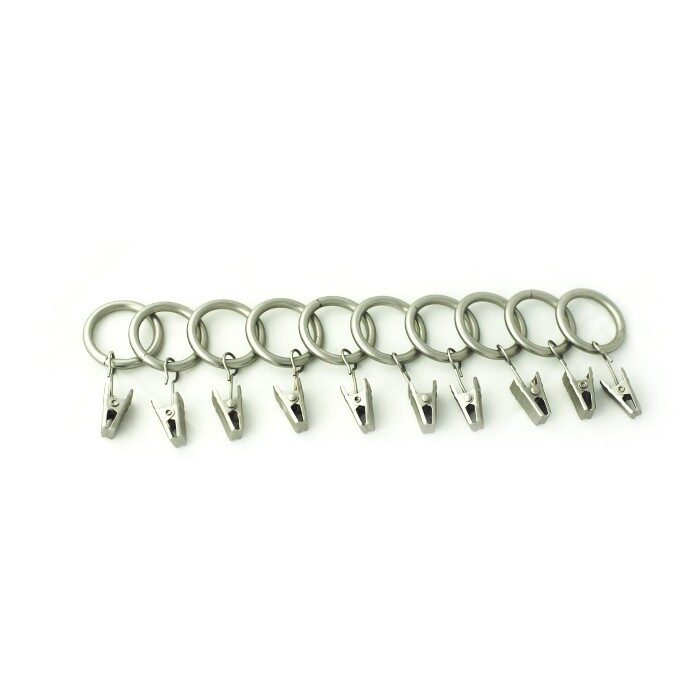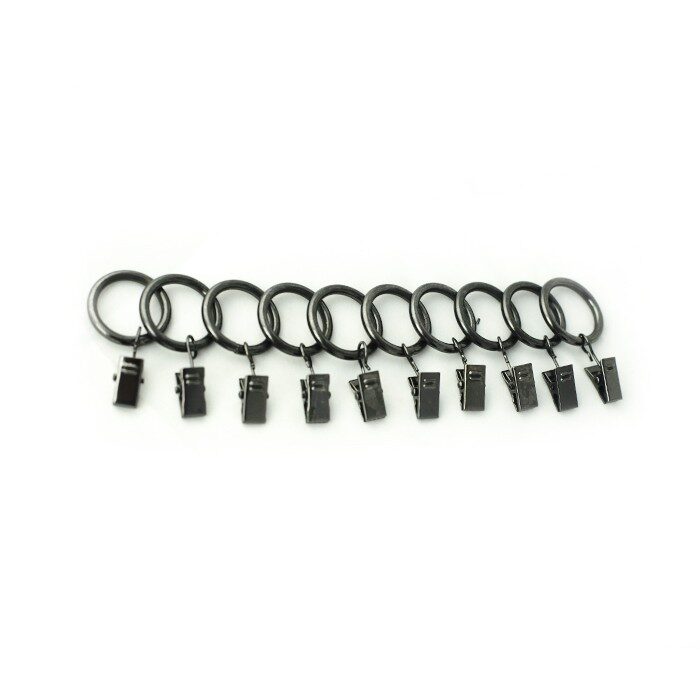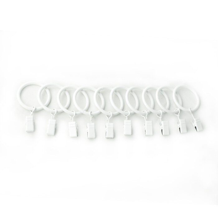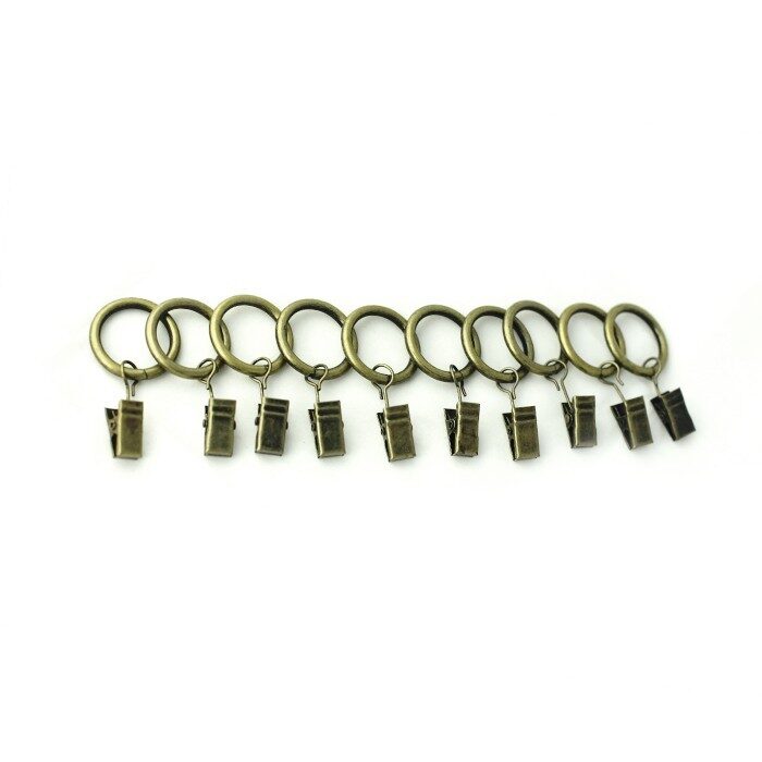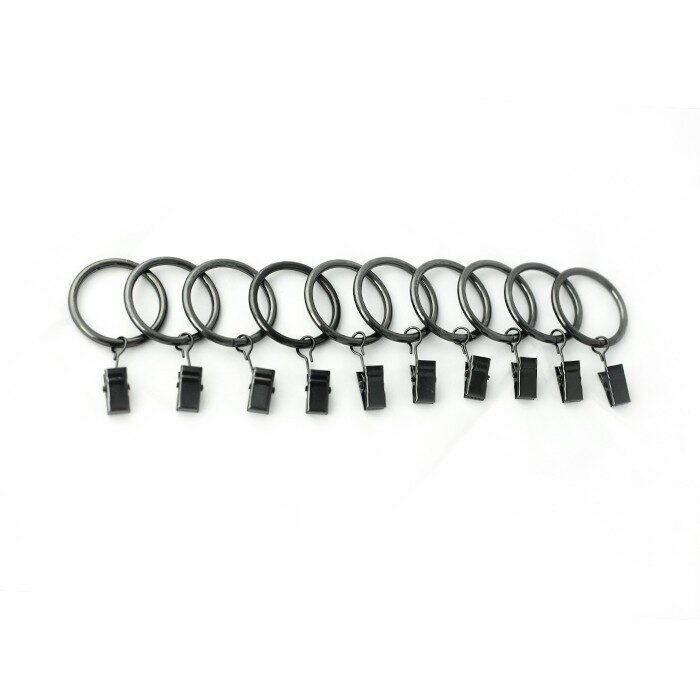 Inelele din metal cu clește se montează pe bară la 10-12 cm distanță una față de alta. Cleștele agață toate tipurile de draperii sau perdele. Cu ajutorul inelelor cu clește, prindeți și desprindeți rapid draperiile - foarte comod atunci când le dați la spălat.
