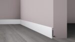 Plintă decorativă M80 noma®floor, rezistentă la apă și lovituri. Ușor de montat, cu spațiu pentru cabluri și finisaj alb elegant – perfectă pentru interioare moderne și curate.